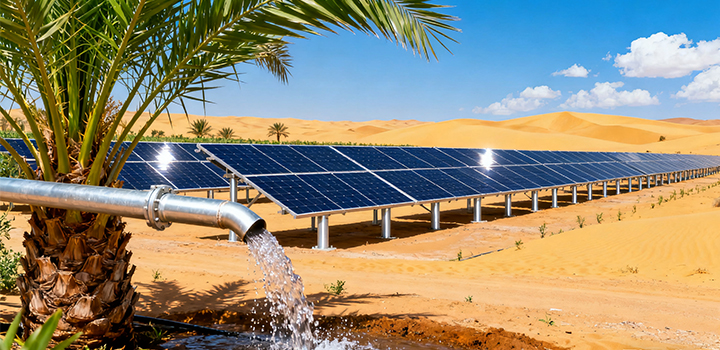 在沙特阿拉伯的偏遠農業(yè)地區(qū),水資源短缺和傳統(tǒng)能源供應不穩(wěn)定一直是主要挑戰(zhàn)。太陽能水泵系統(tǒng)的引入顯著改善了這一狀況。在邁季邁阿市的酷熱環(huán)境中,美捷偉的PV500系列太陽能水泵逆變器高效利用了該地區(qū)豐富的可再生資源。光伏板將無限的陽光轉化為電能,驅動水泵工作,擺脫了對傳統(tǒng)燃料和電網的依賴,大幅降低了運營成本。